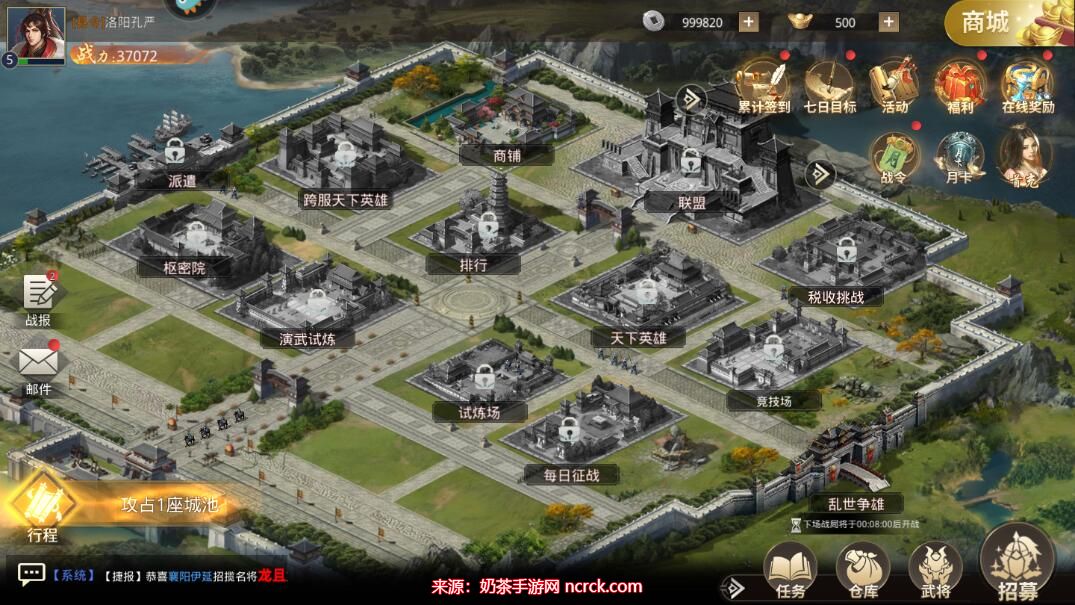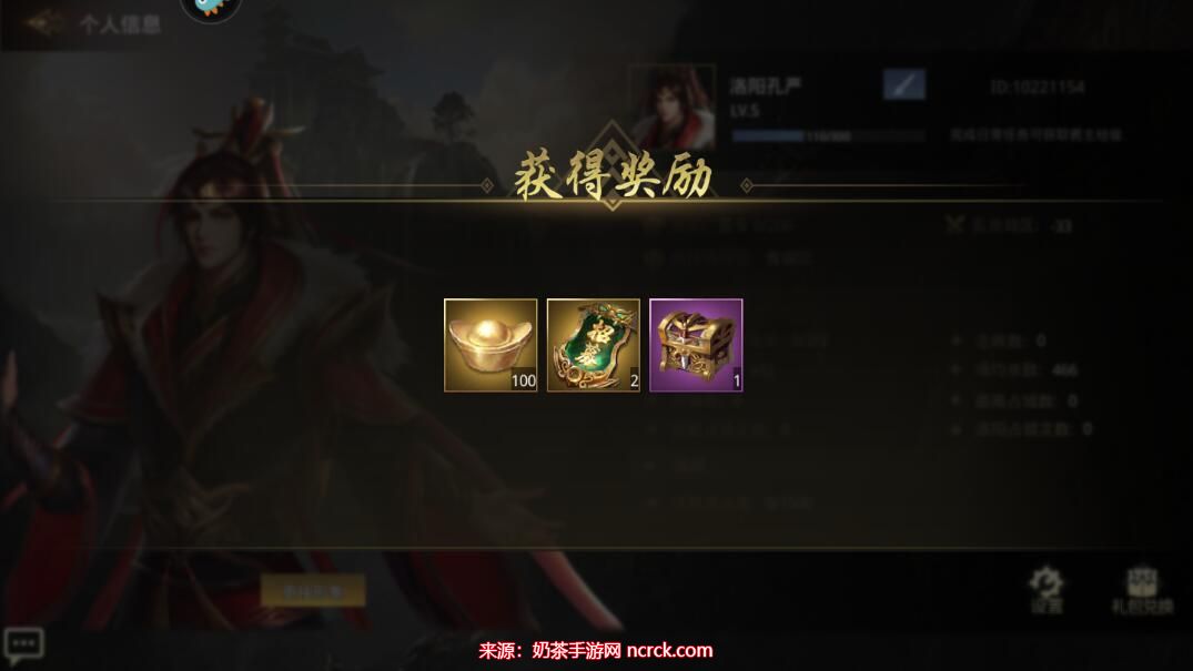 5、点击领取奖励,你将获得元宝、招募券以及宝箱奖励。