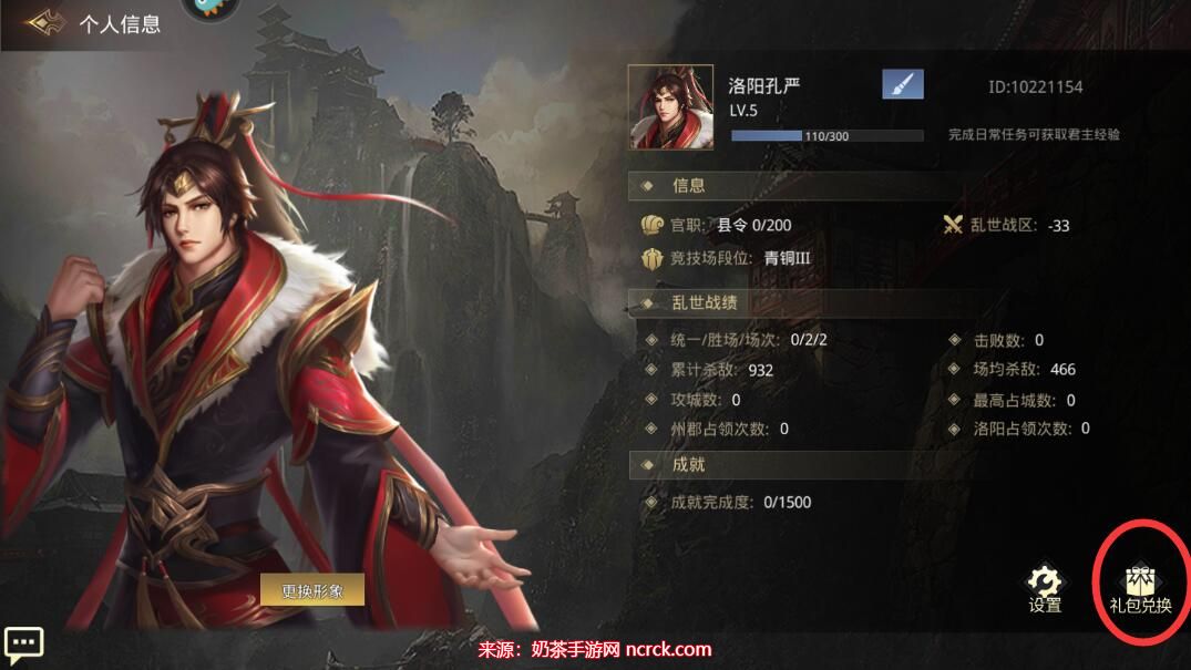 3、在个人信息界面,你会看到右下角有一个礼包兑换的图标,点击它。