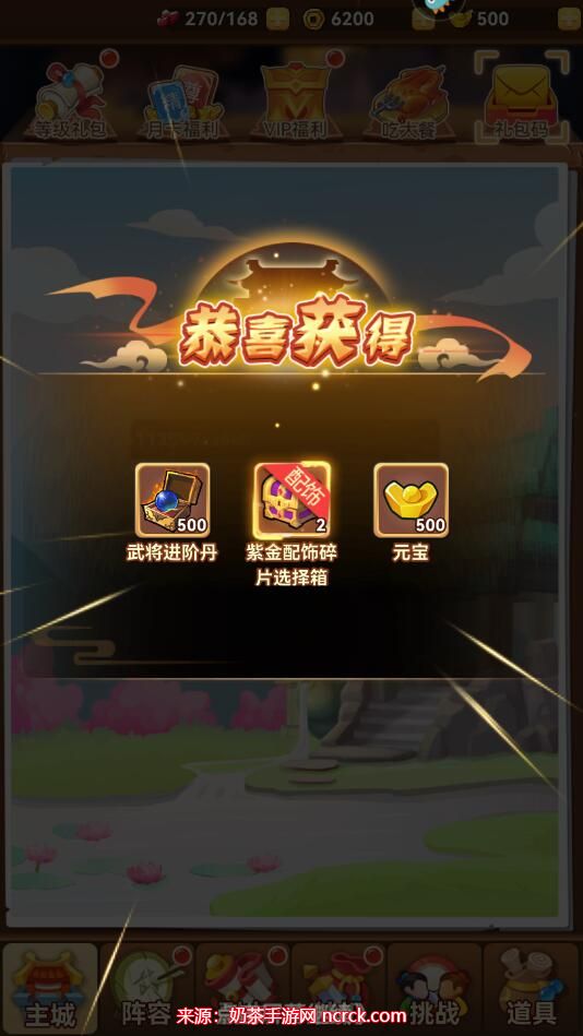 5、点击确定,即可获得元宝、武将进阶丹等奖励。