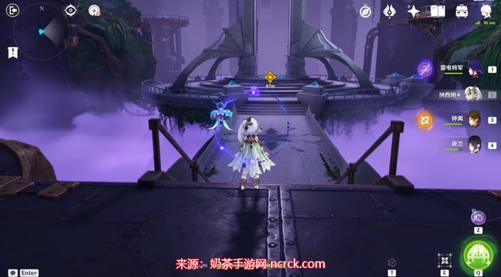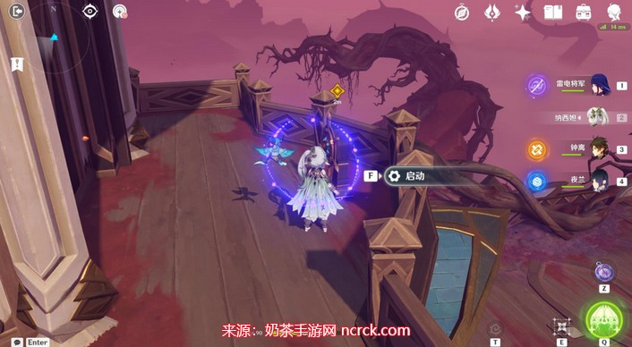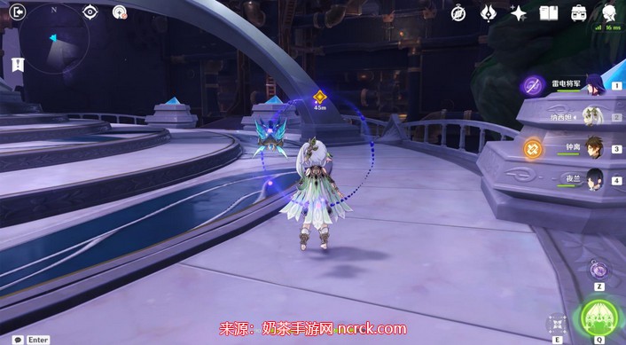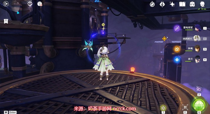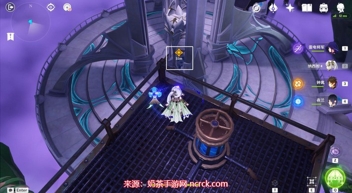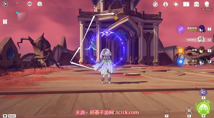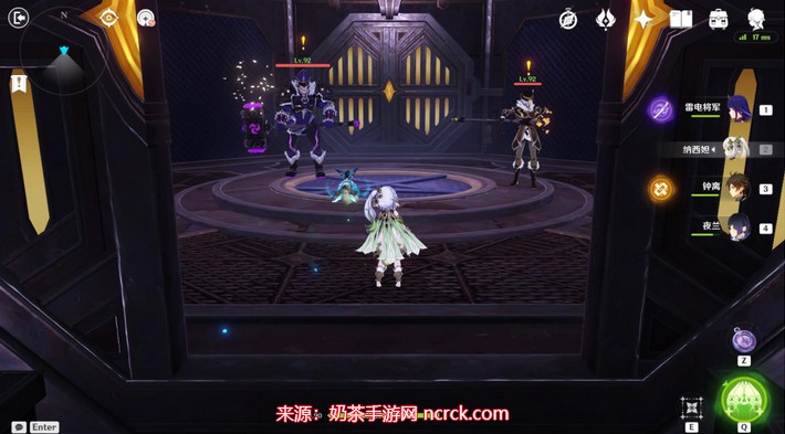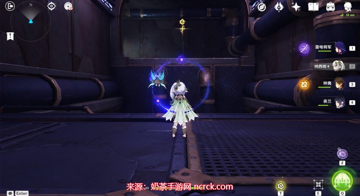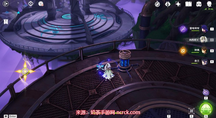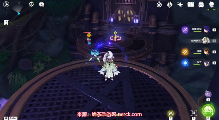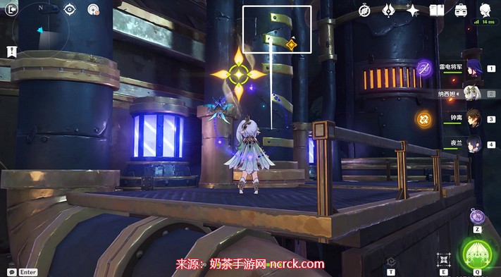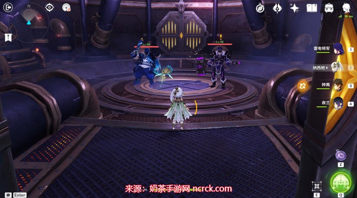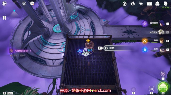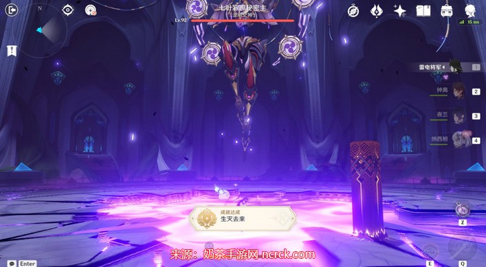 35、站小精灵周围可回血。要一直拾取图中能量块,2个能量块可激活1个元素矩阵。激活左右两边雷元素矩阵,使其瘫痪,获得成就「落落磊磊」。击败「七叶寂照秘密主」阶段①,观看动画。