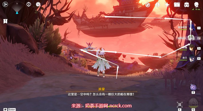 42、按图中指引路线,清理浮空岛上的魔物后,利用四叶印,前往意识之舟。