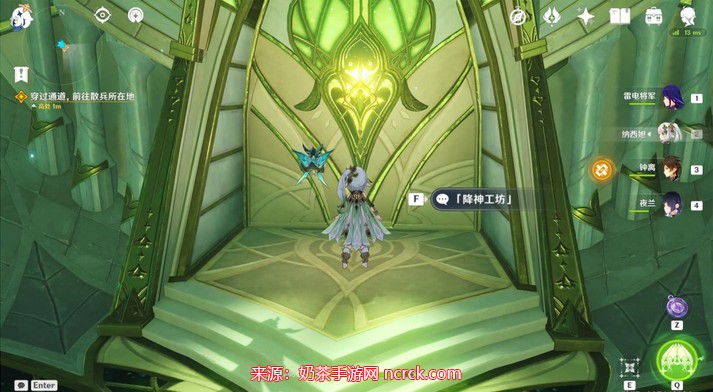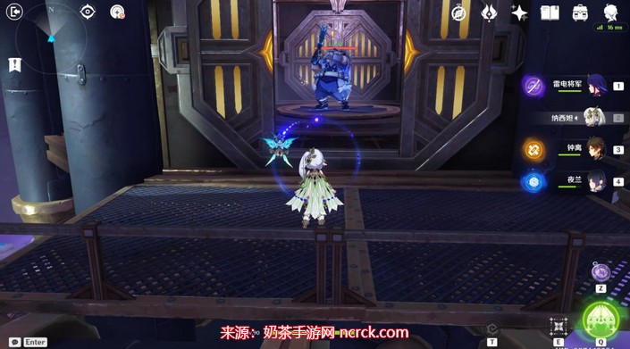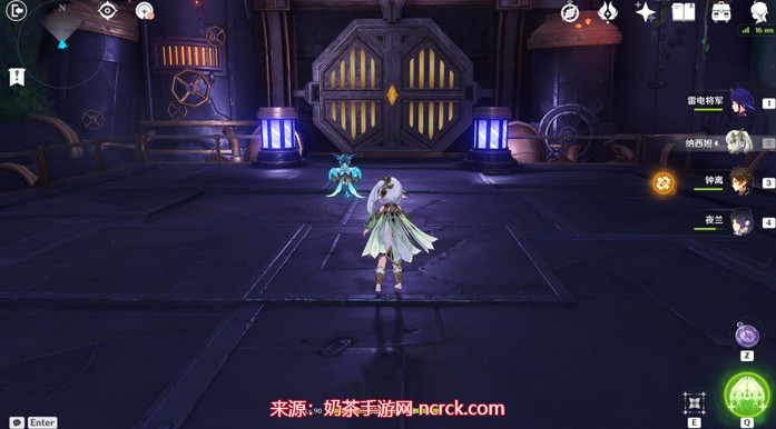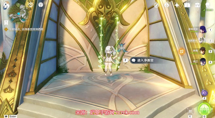1、调整游戏时间至当天16点,进入净善宫,与纳西妲对话。