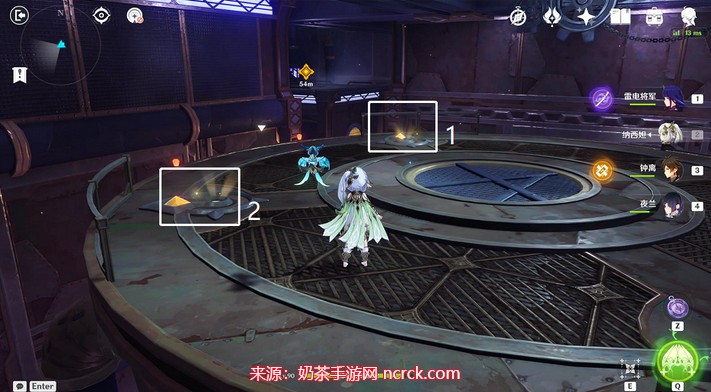 28、前往图中①②机关,按数字顺序各旋转1次,前往三角形位置,等待电梯过来。
