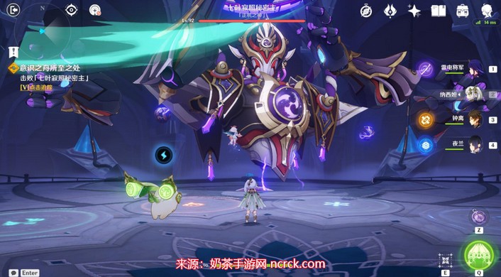 37、注意开护盾/回血,躲避地上的所有技能,拾取图中能量块,给小精灵充能,充满后,会变成元素战技,可用来拍照攻击「七叶寂照秘密主」阶段②的护盾。