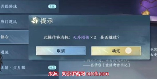 1.首先,玩家需要完成一个奇遇任务,其中涉及使用两块天外陨铁来制作一个特殊物品。