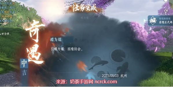 完成《逆水寒手游》中的蝶为媒奇遇任务不仅带来了丰富的游戏体验,还能够获得丰厚的奖励,确保您按照以上步骤执行任务,同时享受杭州的美丽风景,更多精彩游戏与海量攻略,还请大家收藏一下奶茶手游网!