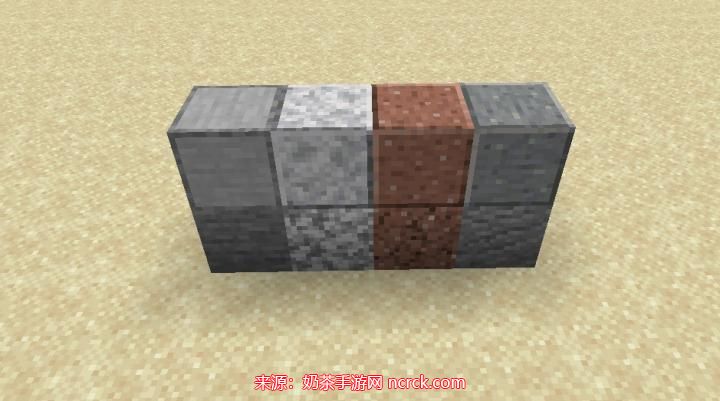 磨制花岗岩、闪长岩和安山岩都是石头的变种,多用于建筑和装饰。它们无法用于合成其他物品,但在建筑中非常有用。您可以使用以下指令来获得它们: