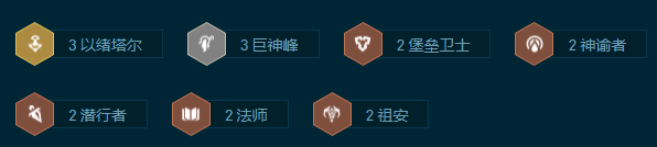 3以绪塔尔、3巨神峰、2堡垒、2神谕、2潜行、2法师、2祖安