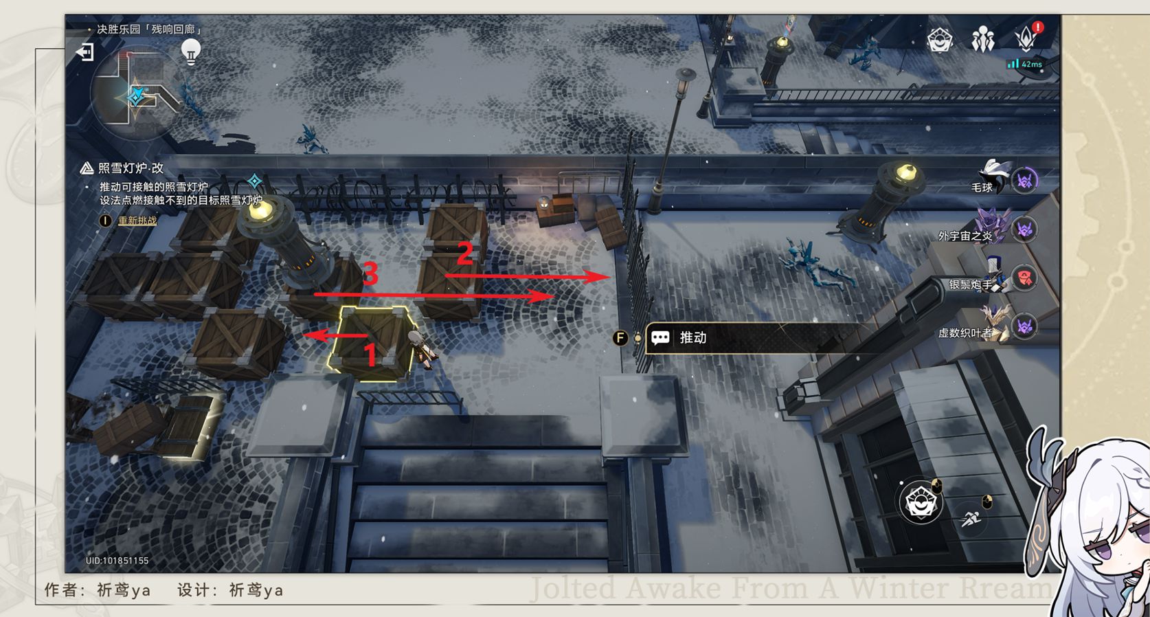 13,按下图顺序移动木箱即可完成解密(有个宝箱可以顺手拿了)