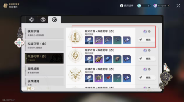 1→2:破碎残刃*3、永寿幼芽*6、信用点*5000