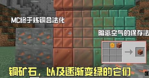 回答:铜锭本身不会氧化,但铜块和铜板在露天的环境下将逐渐氧化,表面会出现绿锈。您可以通过用蜜蜂蜜和铜块/铜板在工作台合成,制作出蜜蜂蜜涂层的铜制品,阻止其氧化过程。