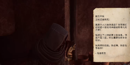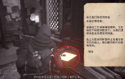 来到挖掘地点,将周遭敌人暗杀后打开箱子,发现一封信。