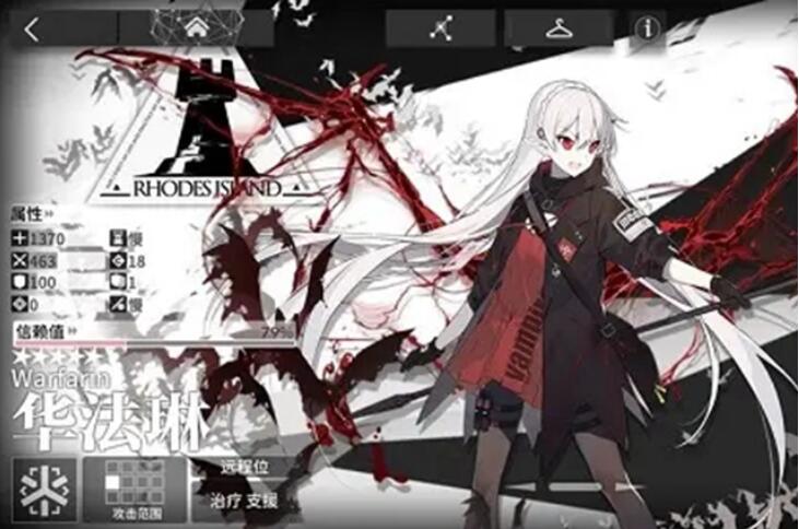 2. 角色定位:辅助型医疗干员。虽然在面对一些高阶战斗时,华法琳与一些六星医疗干员相比可能略显不足,但她的技能依然能在许多战斗中派上用场。