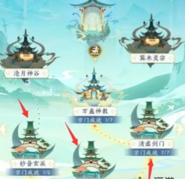 首先,您需要满足特定触发条件,这是解锁巽木灵宗的第一步。请确保您已经在4阶宗门中的妙音玄派、乾阳火宫或清虚剑门中,至少有一个宗门的成就达到7/7。