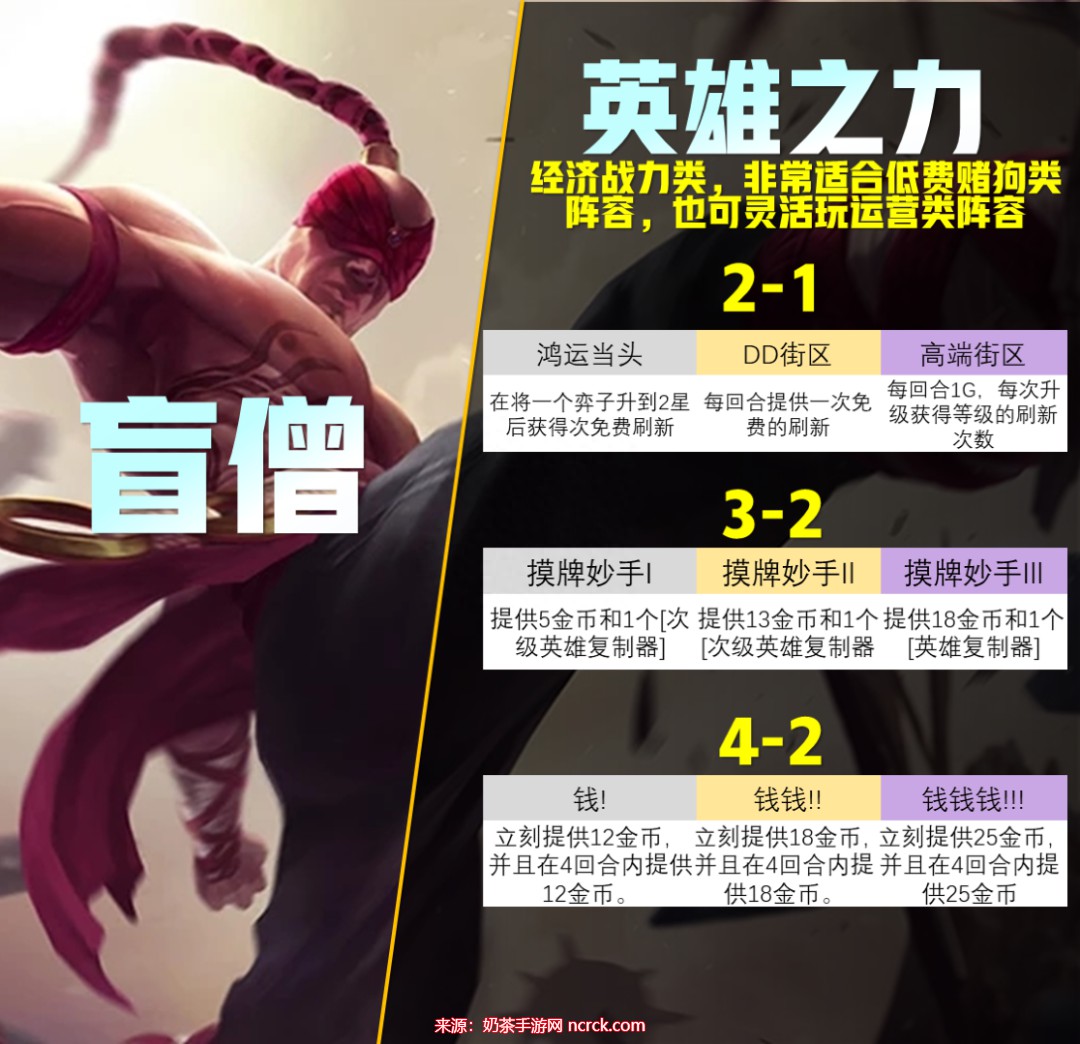 尽量选用盲僧的所有强化。这将大大增强你的整体战力,并使你更容易达到目标。