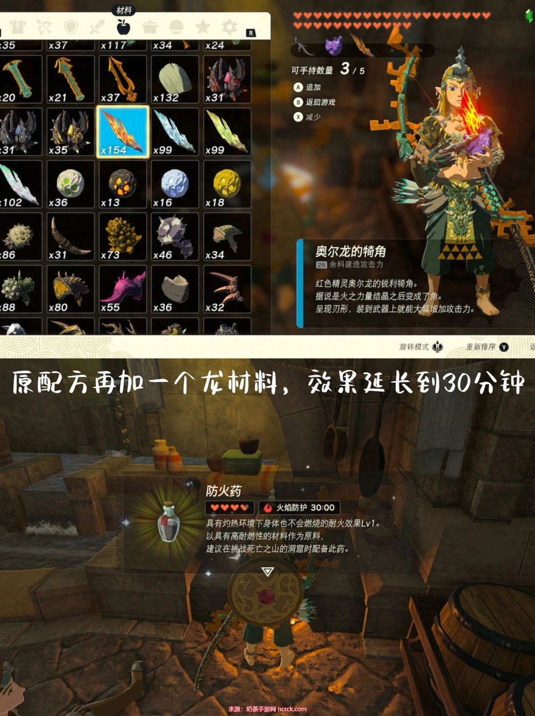 龙角:站在龙头上,直接击打或用箭射龙的犄角可掉落。