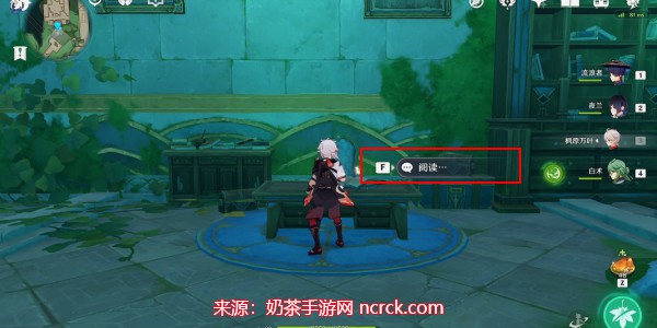操作:抵达自然哲学学院后,向前走一段路就能看见一张石桌。走近石桌,并点击阅读上面的书籍。
