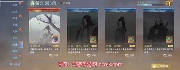 在「万象」竖联中,继续找到并点击「好感」界面。在这个界面中,您将找到「万化纵游」。点击它,按照屏幕上的提示完成相应任务或满足条件,即可成功获取这一武学秘籍。