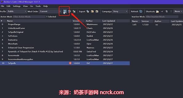 点击上方的保存按钮,以保存你的MOD安装设置。