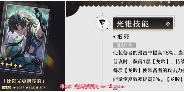 作为饮月君的专属光锥,这款光锥自然是与饮月君完美契合的最佳选择。装备后,暴击率提升18%。在释放普攻后,装备者将获得【龙吟】效果,大幅增加自身的攻击力和能力恢复效率。【龙吟】效果极大增强了饮月君的伤害输出能力。