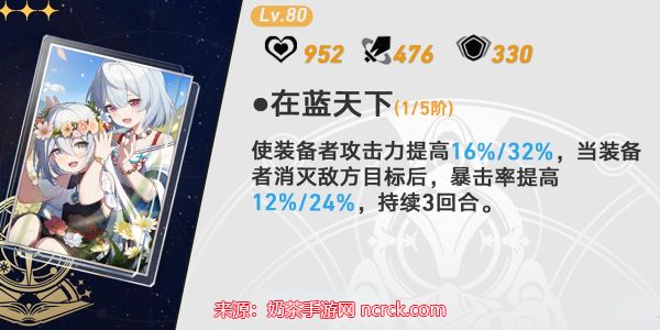 在光锥达到5阶的情况下,这款光锥成为四星中最合适的选择。适合战斗轮次在6回合以内解决,持续3回合即可覆盖4回合。光锥带来无条件的攻击力加成和较高的暴击率加成。