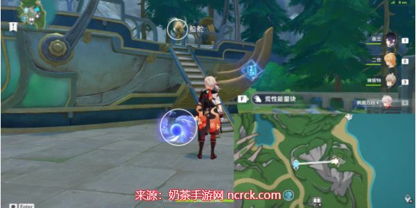 首先,传送到枫丹地图的苍晶区七天神像附近。向东走,您会找到一艘飞艇。拾取荒性能量块并攻击芒性船舵来激活飞艇。