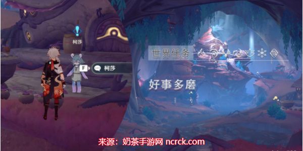 前往海沫村东北方向地下锚点,与NPC柯莎对话,接取任务「好事多磨」。