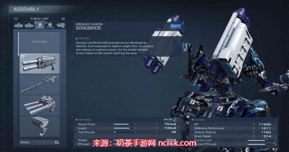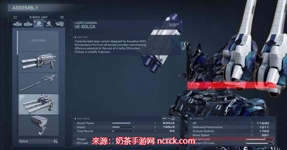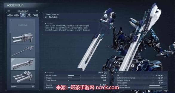 特性: 作为肩部武器,雷射加农炮拥有超高的火力,是肩部武器中数一数二的存在。