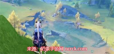 2.出来后,朝着湖泊旁边飞行,你会看到一些黄色的树木,这就是白梣木。将它们采集即可获得枫丹木材。