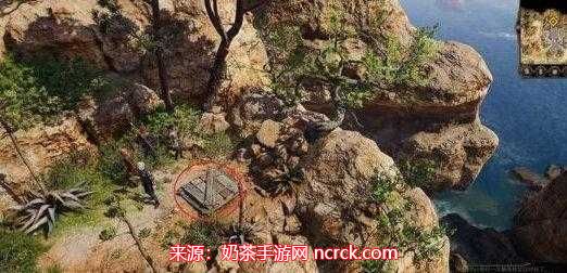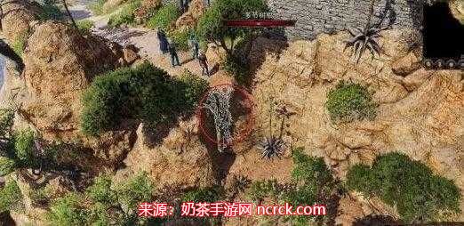 通过红圈标记的藤蔓爬下进入。