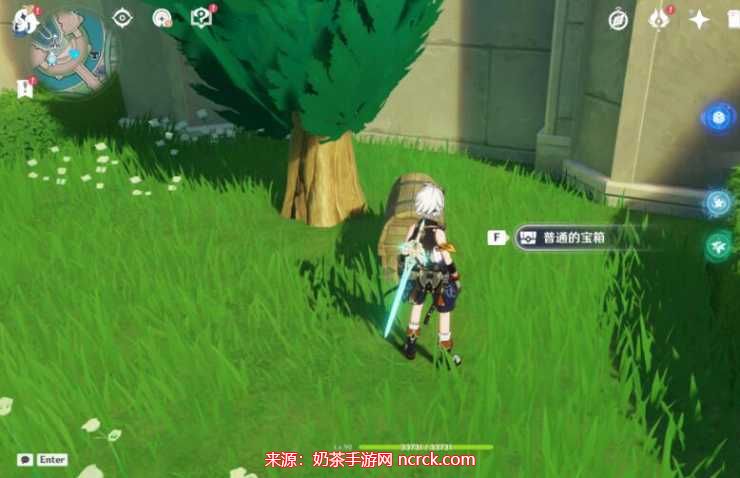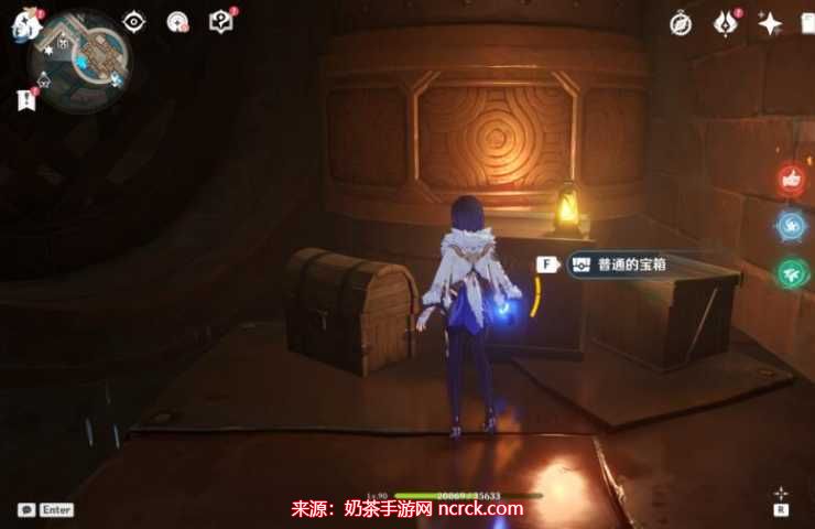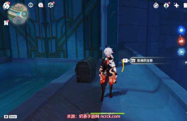 在枫丹廷的第一个宝箱中,我们需要巧妙地运用荒芒元素的力量,攻击宝箱周围的机关