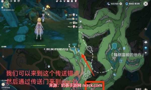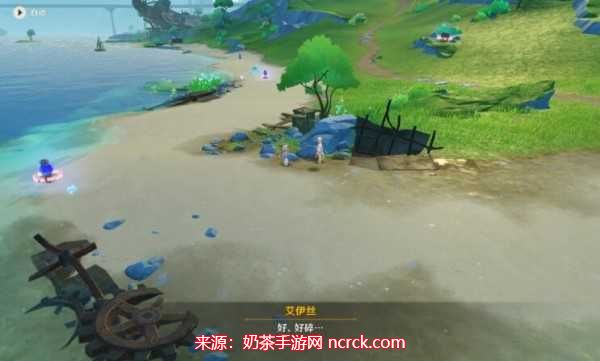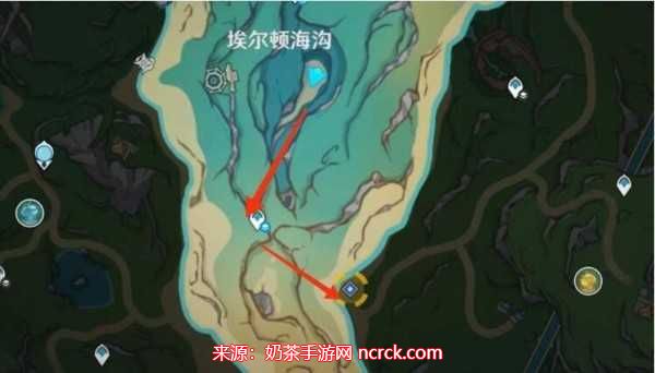 打开地图,找到埃尔顿海沟附近的传送锚点,然后朝东北方向前进,你将能够看到艾伊丝的身影。