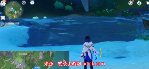 对话完毕后,跳入附近的水池,开始潜水,并一直朝着水池的底部前进。