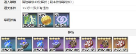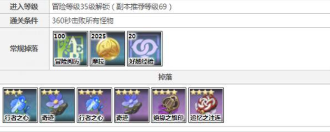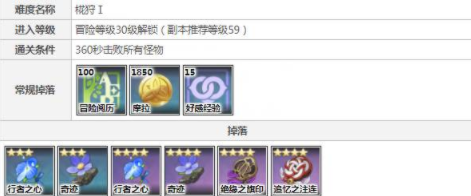 通关条件、要求、怪物类型及掉落物如下: