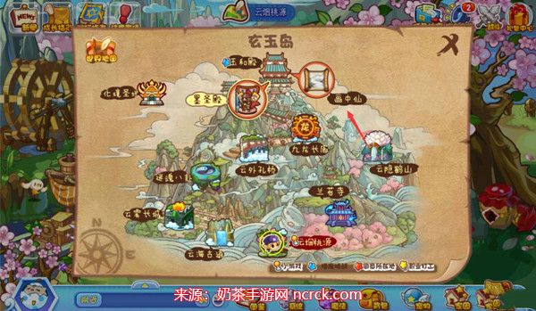 2、一旦抵达玄玉岛,点击云烟桃园小地图。