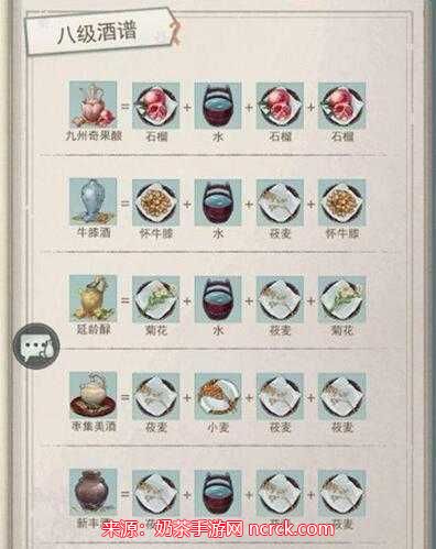 3、碧芳酒:莲花+莲花+黍米+水,归属:花酒。