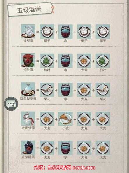 2、大麦烧酒:大麦+大麦+大麦+小麦,归属:烧酒。
