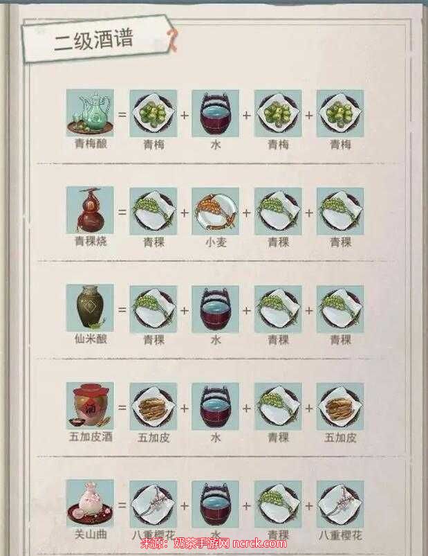 3、关山曲:八重樱花+八重樱花+青稞+水,归属:花酒。