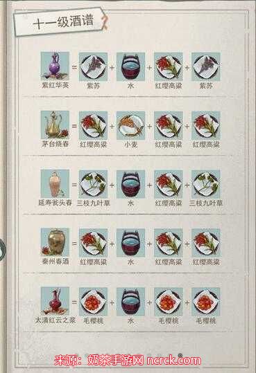 3、瘤仙酝:梅花+梅花+高粱+水,归属:花酒。