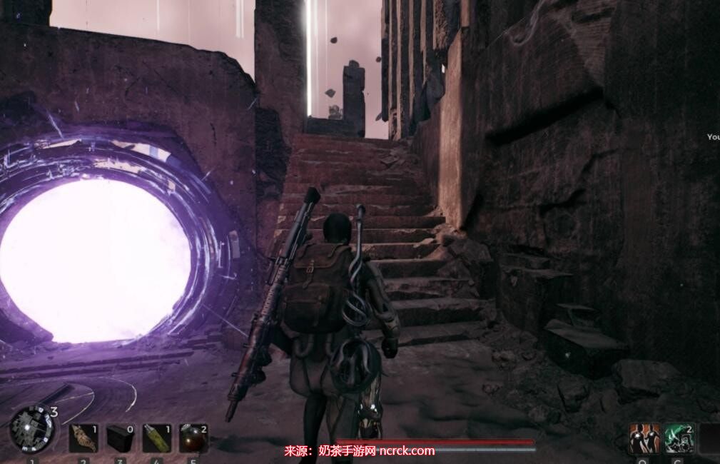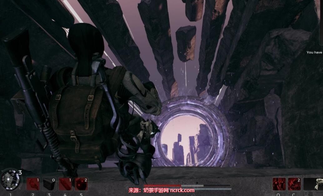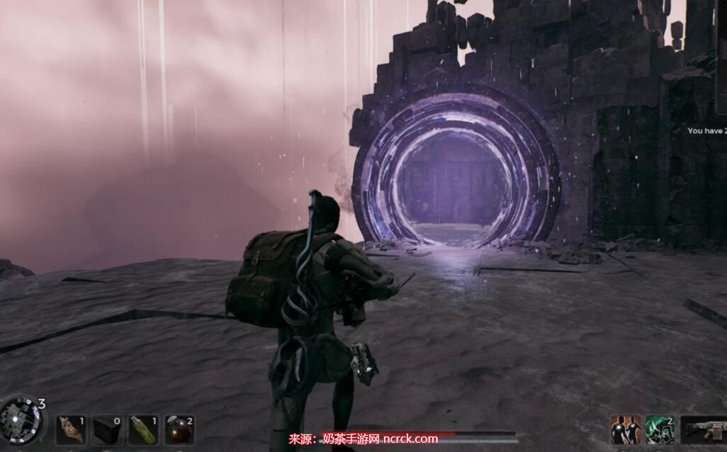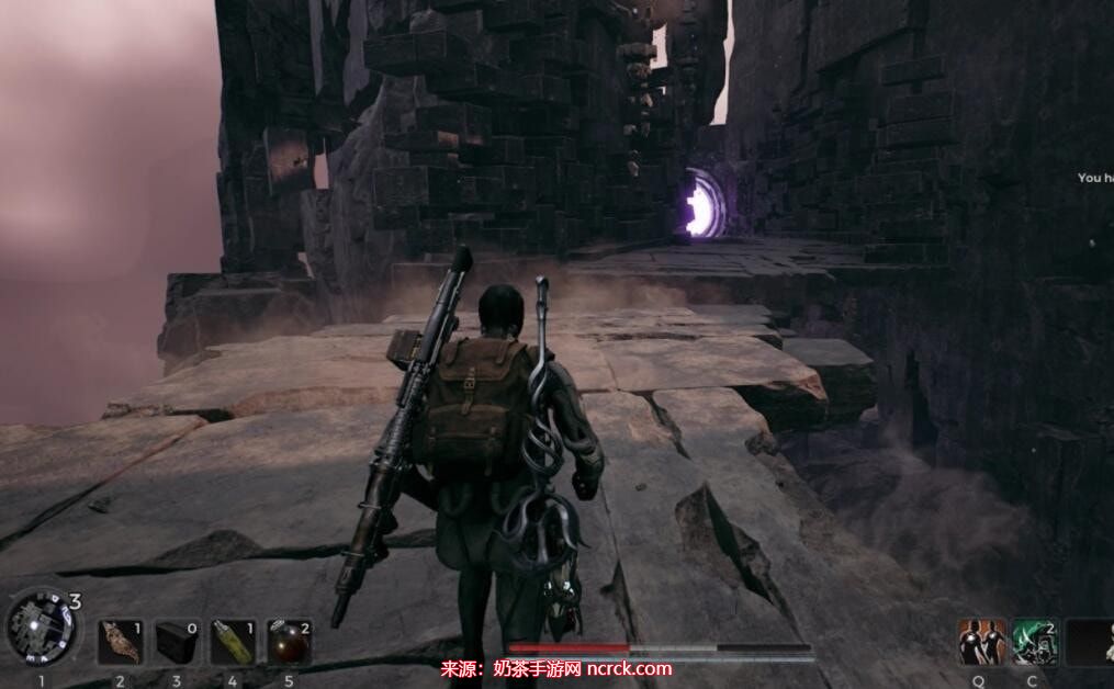 穿过通道后,您会看到一座临时搭建的桥。继续前进,但不要进入您面前的传送门。
