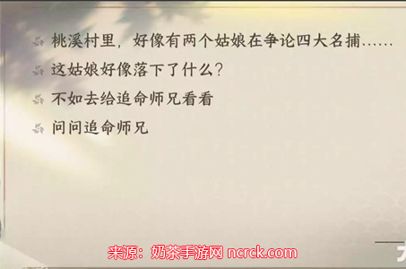 现在,你需要前往【汴京】坐标(921.912)寻找NPC【追命】。将【草编小人】交给【追命】。