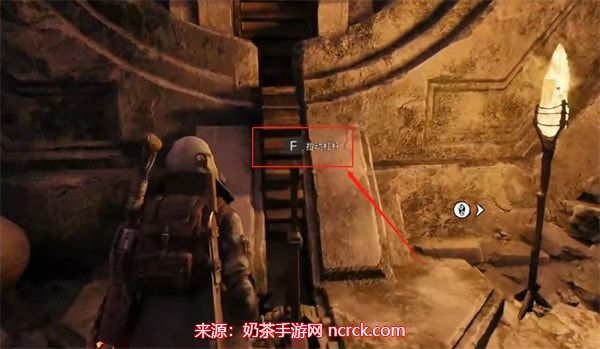 2、地下的门是锁住的,我们从侧面绕过去,打开柱子的开关。