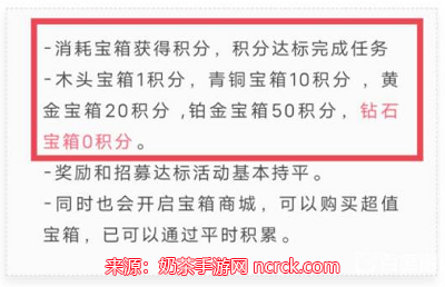 不同宝箱品质对应不同积分,宝箱等级越高,积分越多: