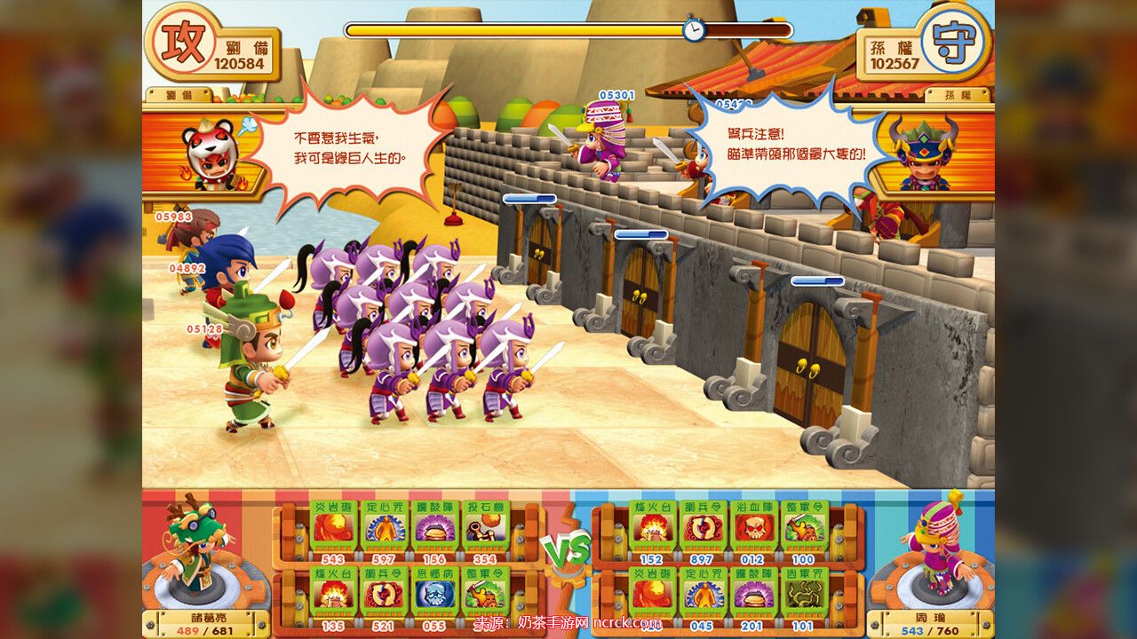 装备:在本作中,装备种类也得到了扩充,现在包括「武器」、「头盔」、「铠甲」、「鞋子」、「护符」等5个部位。你可以根据武将的特色来打造更适合他们的装备,提升他们的属性。