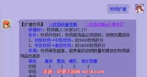当您的牧场达到高级或专精级别,并且牧场动物的专精等级总和达到15级时,将开启守护兽玩法。当天拜访3家不同的牧场并拥有30个以上的牧场好友,可以积累一天的活跃天数。当动物数量和累积活跃天数达标时,有机会获得牧场守护兽。通过守护兽,您可以将普通动物产出炼化为高级产出,高级产出的积分更多。炼化有一定概率失败,失败时会返还部分动物产出。需要特别说明的是,守护兽的合成次数有限,受到对应动物养育数量的影响,并有概率获得额外合成次数的神仙祝福。