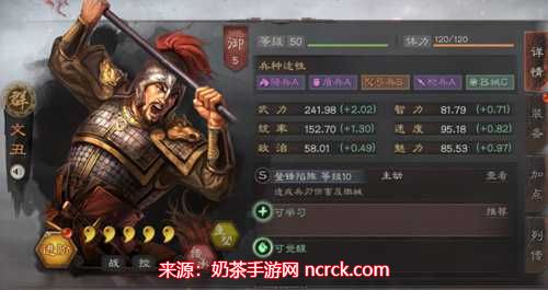文丑还可以装备可拆战法“破阵催坚”。该战法需要1回合准备,对敌军的2名单位造成兵刃伤害,并使其统率、智力属性降低持续2回合。这个可拆战法适合在特定情况下使用,可以根据敌方阵容和实力来进行调整。