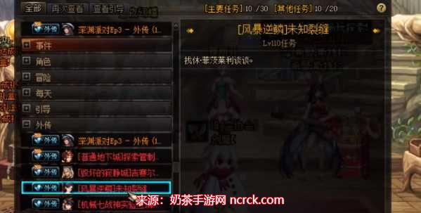 首先,打开游戏任务系统,在【外传】中找到“风暴逆鳞未知裂缝”任务并接受它。