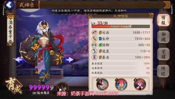 3、打boss的时候,将一目连和鸦天狗换下阵容,优先使用腹肌锁2技能,酒吞童子可以很容易协战好结果,如果运气不佳导致脸黑的话,那就只能再试一次了。