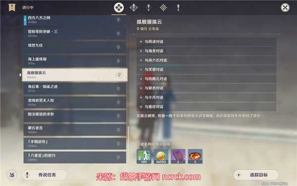 在「死兆星号」上,有八位NPC可供您对话。为了更快速、准确地与他们对话,您可以点击追踪目标,这样就能快速定位并与各位NPC对话了。对话内容并不是特别重要,如果您不想观看对话,可以点击自动播放,然后将游戏切到后台,继续进行其他操作。