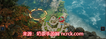 2、接着向下移动,前往地图上标有红圈的位置,这是第二个目的地。